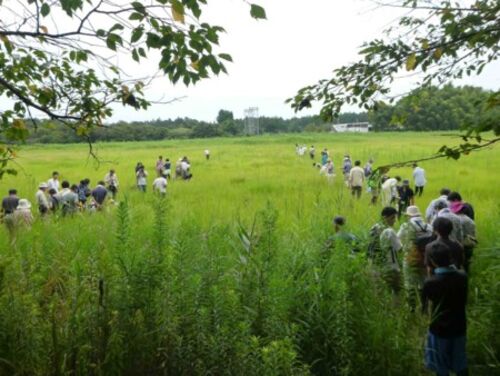 一見、何の変哲もない空き地になぜ人だかりができているかというと、 この湿地にはナガバノイシモチソウとか、 ゴマクサとか、絶滅のおそれがある希少種が自生しているからです。 こういった植物は、植栽して増えるものではありません。人にできる保全対策は…