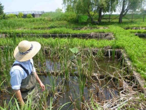 雨だった予報が晴天に転じた今日は、炎天下のもと、手賀沼湖畔の実験池と手賀沼のハス帯で調査してました。 手賀沼ではヒメガマ帯にハスが侵入していくのに、実験池では2年間にわたってハスが押されがちでした。今年も下の区画では、ハスは葉が1本しか出てい…
