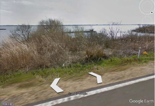 2008年時点の霞ヶ浦根田の、アサザ植栽地です。Google Earth のストリートビューからとってきました。沖合に消波堤が見えます。アサザを波から守るとして作られたものです。 2000年に工事が行われた頃の写真です(出典:霞ヶ浦湖岸植生帯の緊急保全対策評価…